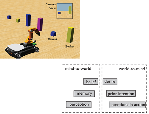 The ability of situated, embodied agents to pursue goals using internal knowledge is central to autonomous behavior. This raises the challenge of how neural systems represent and coordinate intentional states like perception, memory, belief, and action. Drawing on Searle’s intentional modes, we model these states as stabilized neural activation patterns, with transitions driven by dynamic instabilities. This enables flexible sequencing of internal states based on context. Beliefs emerge through learning as associative memory networks that activate to support goal achievement.